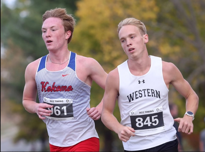 Western's Maddox Carver ,left adn Kokomo's Connor Frederick push toward the finish line in the boys race of the Logansport Cross Country Sectional on Saturday, Oct. 19, 2024. Western won the team title and kokmo was runner-up. Peru's Landen Emerson was 48th (19:30.0), Cole Yates 54th (19:35.0), Benjamin Garner 65th (20:00.2), Ian Childs 71st (20:32.1), and Marcus Garner 78th (21:06.5) Eastern's Jakob Bertoline was 51st (19:33.4), William Kuntz 56th (19:39.6), Samuel Thomas 70th (20:28.1), Chase Roseberry 80th (21:27.9), and Hayden Leopard 81st (21:33.4). Carroll's Noah Johnson was 45th (19:26.4) and Alexander Majors 99th (25:32.4). Taylor's Braden Wunderlich was 49th (19:32.3), Xander Snow 50th (19:33.0) and Blaine Challis 90th (22:36.3). "I’m happy for Obi to be racing again next week in the regional, and we’re looking forward to a strong race," Eastern coach Ben Cox said. "William [Kuntz, 41st] was aiming for a spot at the regional as well. The effort earned him a PR, even though he came up short of qualifying. It was also good for Parker [Smith-McCombs, 93rd] to end his career on a season-best only five seconds from his PR." For full lists of scoring runners from local teams, see the scoreboard on A10. GIRLS RACE With Aftin Griffin racing to the individual title, Cass won the girls race with a score of 51 for its first sectional title since 1998. Logansport was second at 88, Northwestern third at 90, Maconaquah fourth at 99 and Western fifth at 120 to take the final advancing team spot. Kokomo was sixth (151). Carroll and Peru were incomplete. Griffin finished more than a minute ahead of second place, winning in 19:17.8. Also for the Kings, Hope Rush was sixth (21:21.2), AnnaLeigh Hedrick seventh (21:29.7), Brystalin Gillem 22nd (23:24.2), and Bianca Panmei 23rd (23:25.5). Northwestern was led by Annabelle Brewster in fourth (20:39.4). Vanessa Morrow was 11th (22:30.0), Joy Wasmuth 27th (23:37.5), Meredith Kelly 30th, and Bella Winrotte 33rd (24:01.4). Maconaquah saw Chloe Jordan finish second (20:24.1). Zoie Laber was 17th (22:59.5), Elaina Montgomery 29th (23:42.7), June Schrock 34th (24:12.9), and Macie McManus 35th (24:24.3). Western's Lucy Schave was fifth (21:13.6), Mary Claire DiPaola ninth (22:05.1), Samantha Williams 28th (23:42.0), Marli Hunter 46th (25:32.8), and Gracie Shade 55th (26:12.2). Kokomo's Alaina Thompson took 10th (22:16.1), Morgan Rakestraw 38th (24:34.1), Christina Durham 40th (24:46.8), Gretchen Riggle 42nd (24:52.4), and Macy Rakestraw 49th (25:41.9). Thompson and Morgan Rakestraw advanced as individuals. Carroll's Riley Hayden was 13th (22:43.4), Jillian Salts 16th (22:58.2), Cora Altic 24th (23:29.6), and Oliva Schroder 66th (27:26.7). Hayden, Salts and Altic advanced as individuals. Peru's Evaney Fischer was 15th (22:51.2), Esther Collie 21st (23:18.4), and Bailey Butt 37th (24:25.6). All three Bengal runners advanced as individuals. |